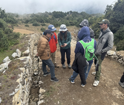 シャンボチェ空港周辺の登山道において、地元関係者向けにスマホを利用して気軽に登山道の3Dスキャンニングデータを収集する方法とアプリの操作について説明を行った上で、参加者に実際に登山道のデータ収集を体験していただきました_2024/9/24